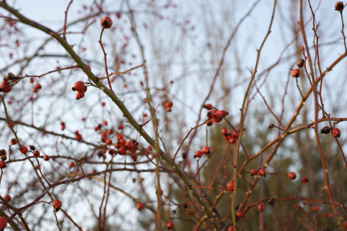 Nečekaný rok doma nám přinesl vycházky. A protože chodíme skoro každý den na vycházku stejnou, umožňuje nám to důkladně se seznámit s našim okolím. Tak trochu se ve vzpomínkách vracím do období, kdy jsem chodila pravidelně běhat. Skoro stejná trasa každý den mi umožňovala pozorovat rychlé proměny lesa. Změny byly pozoruhodné hlavně na podzim a na jaře. Zatímco v létě a zimě zůstával les víceméně stejný, na jaře stačilo vynechat dva dny, a najednou člověk běžel úplně jiným lesem. Teď les objevujeme do posledního detailu, což nám umožnilo objevit dokonalý domácí šípkový čaj.